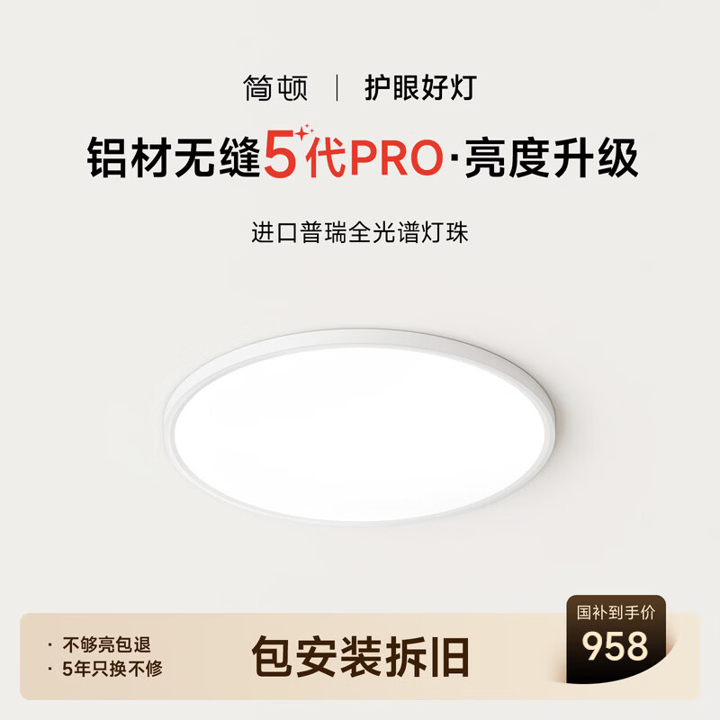 简顿全光谱无缝护眼吸卧室吸顶灯5代pro超薄现代简约包安装