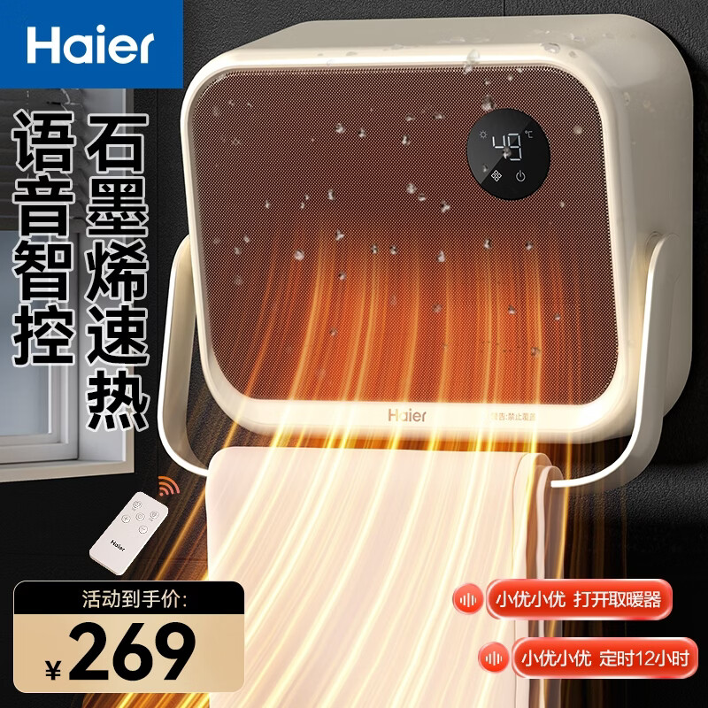 海尔(Haier)【小红花套系】【防水壁挂】浴室暖风机/取暖器家用/电暖器/加热风机/浴霸防水烘干/石墨烯电暖气 1度电暖浴室丨语音防水 HNF-S2000AP