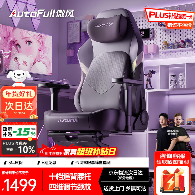 傲风C3Pro星紫女生电竞椅子人体工学椅电脑椅办公椅人工力学椅游戏椅