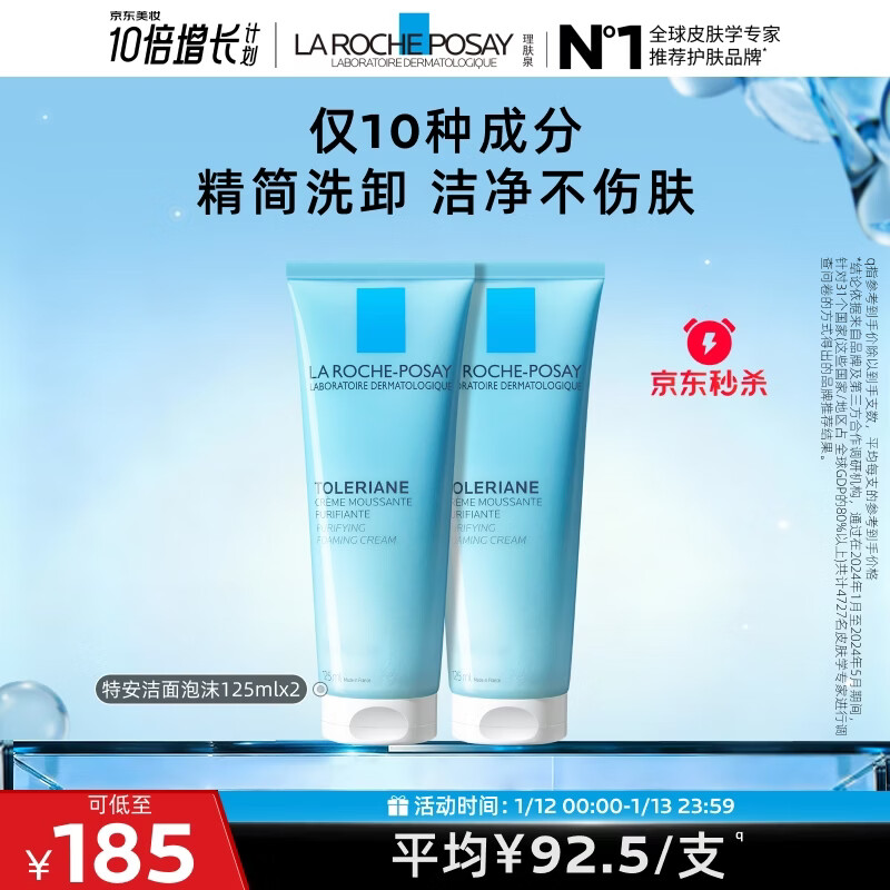 理肤泉特安洗面奶125ml*2支装洁面泡沫保湿卸妆温和清洁护肤品新年礼物