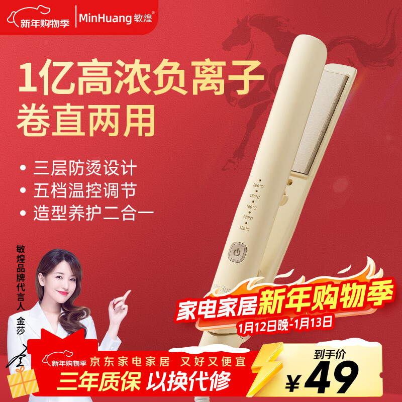 敏煌(MingHuang)夹板直发卷发两用直板夹负离子卷发棒迷你小型宿舍便携神器 H5米色
