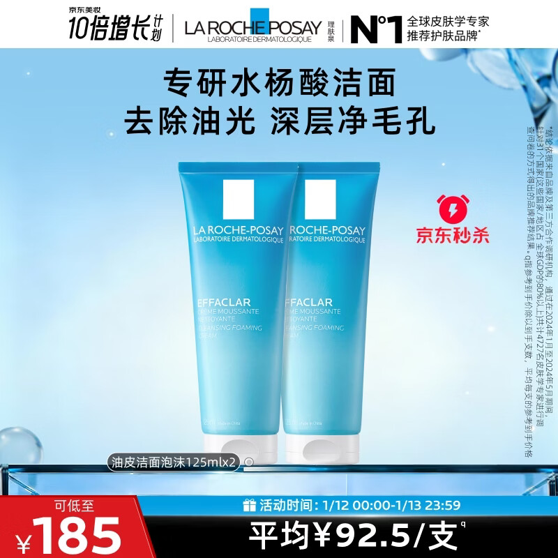理肤泉油皮洁面泡沫125ml*2支套装水杨酸控油清洁洗面奶男士女士护肤品