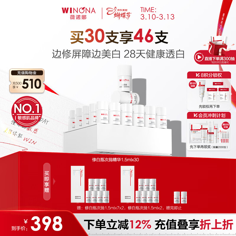 薇诺娜修白瓶次抛1.5ml*30美白提亮补水精华液套装护肤品礼物女神节礼物