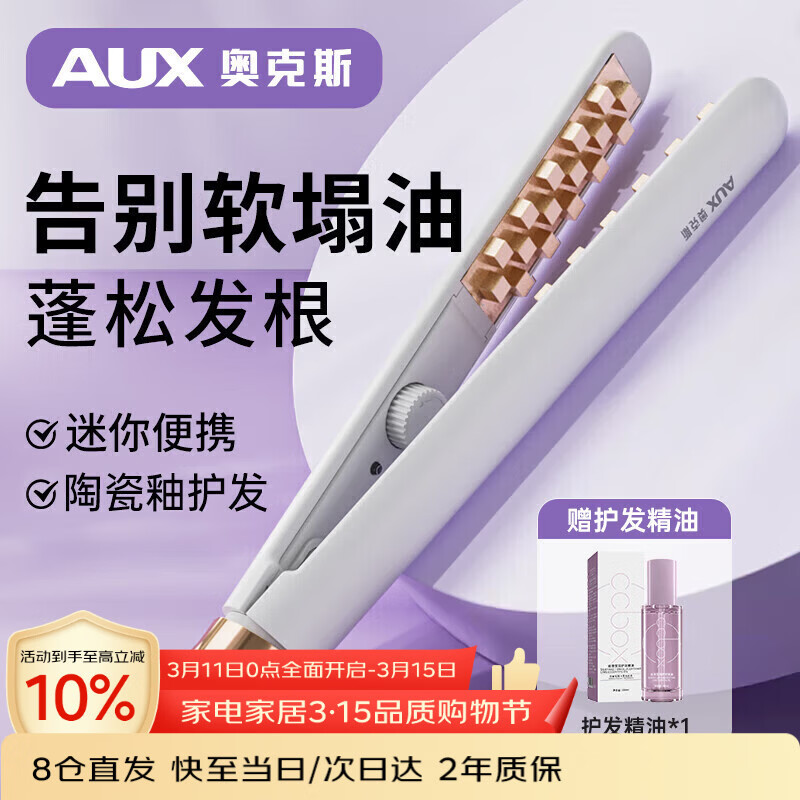 奥克斯(AUX)迷你玉米烫夹板蓬松发根不伤发卷发棒宿舍小型便携玉米须美发棒头发蓬松神器玉米夹【出行必备】