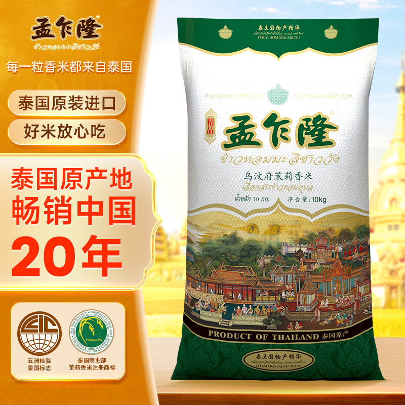 孟乍隆 乌汶府茉莉香米 泰国香米 进口大米 籼米 长粒米 家庭装20斤