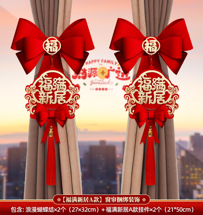 嘻吻乐乔迁新居布置窗帘绑带装饰用品全套2025乔迁之喜新房大吉入宅礼物 新款烫金【福满新居1对】