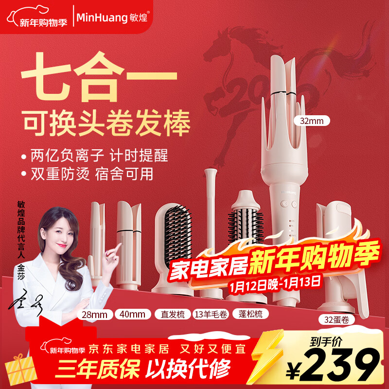 敏煌(MingHuang)【进阶造型】三合一自动40mm卷发棒32大卷蛋卷卷发棒负离子28五合一直发梳