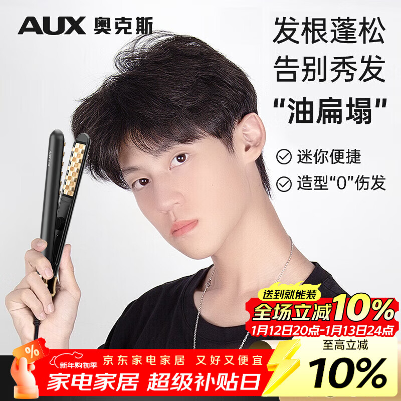 奥克斯(AUX)玉米烫夹板蓬松发根不伤发直发夹板卷发棒小型男生专用迷你电夹板烫发棒短发刘海夹【出行必备】