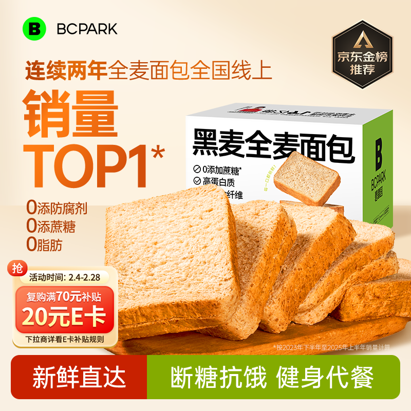 碧翠园全麦面包0脂0蔗糖黑麦吐司1000g粗粮面包早餐健身代餐食品零食