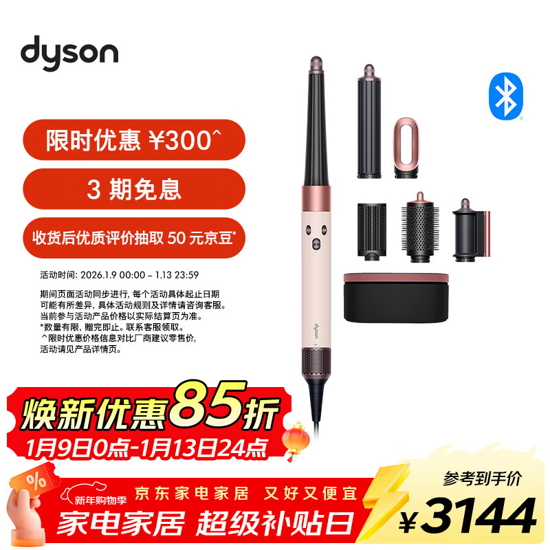 戴森(DYSON)HS08 智能自动卷发棒 吹风 卷/直发神器 蓝牙连接一键造型 便携 送礼推荐 晨曦粉色