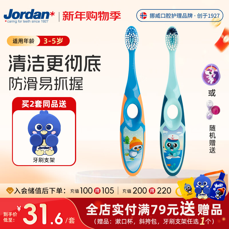 Jordan宝宝儿童牙刷 细软毛牙刷 3-6岁以下A款 2支装呵护牙龈