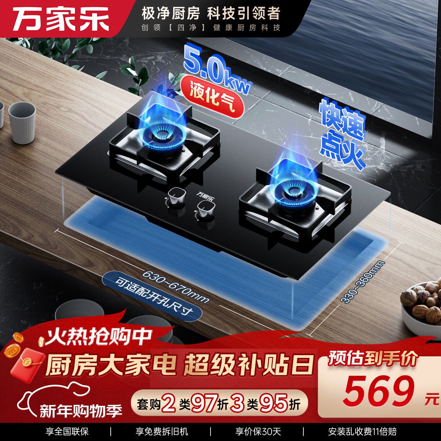 万家乐燃气灶【双高火LAY8液化气灶】立体全进风灶 5.0kw大火力嵌入式台式煤气灶双灶家用可适配开孔尺寸