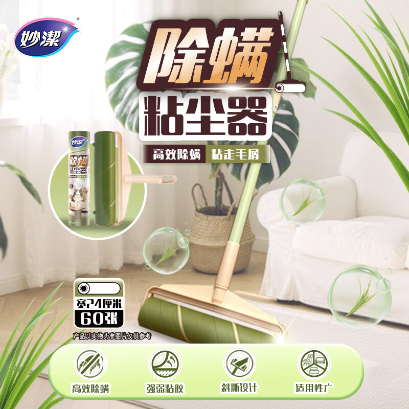 妙洁粘尘大师除螨粘尘器大号24cm*60撕 滚筒粘毛纸可撕式衣服清理神器
