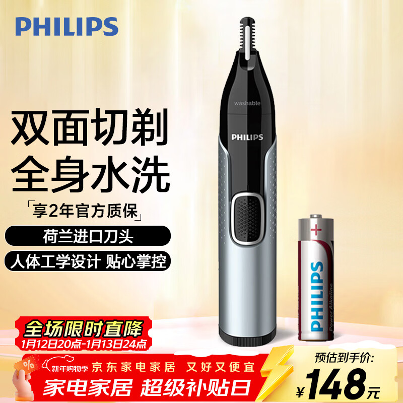 飞利浦(PHILIPS)鼻毛修剪器双面切剃全身水洗剃毛器 生日礼物送男生男友老公父亲 NT5600
