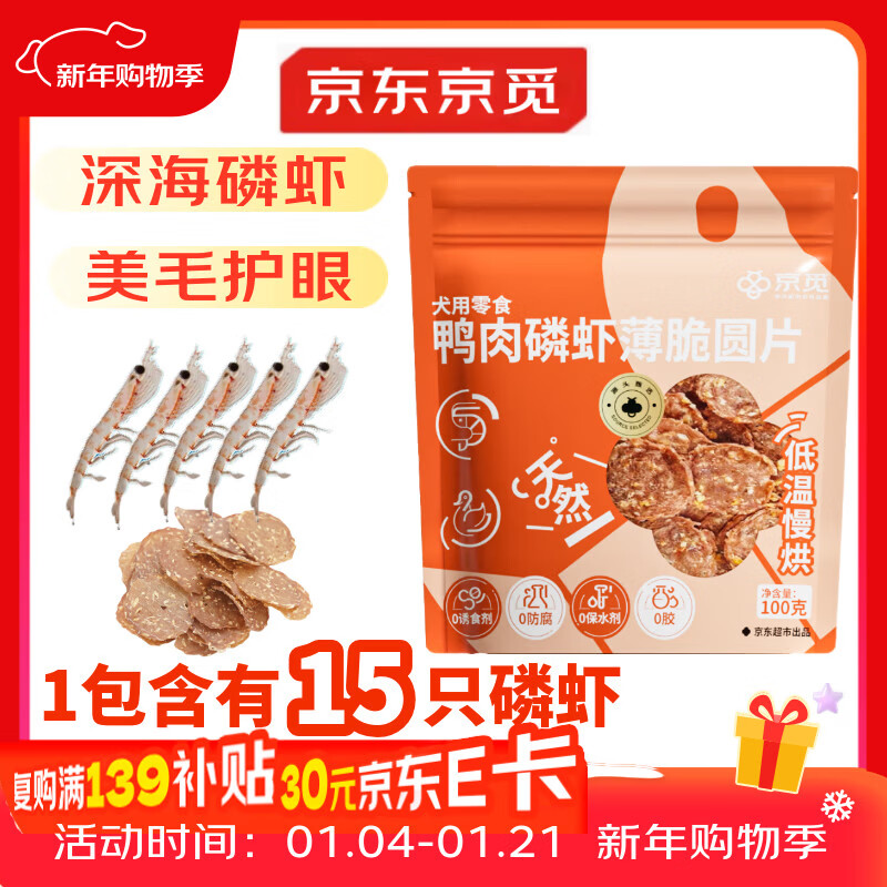 京觅磷虾鸭肉片磨牙棒鸭肉狗狗零食训练奖励原料透明清火消泪痕100g