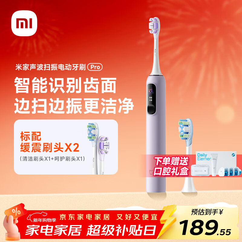 米家小米声波扫振电动牙刷Pro 智能分面扫振彩屏数显提醒 缓震包胶刷头180天续航新年礼物送男女友礼物