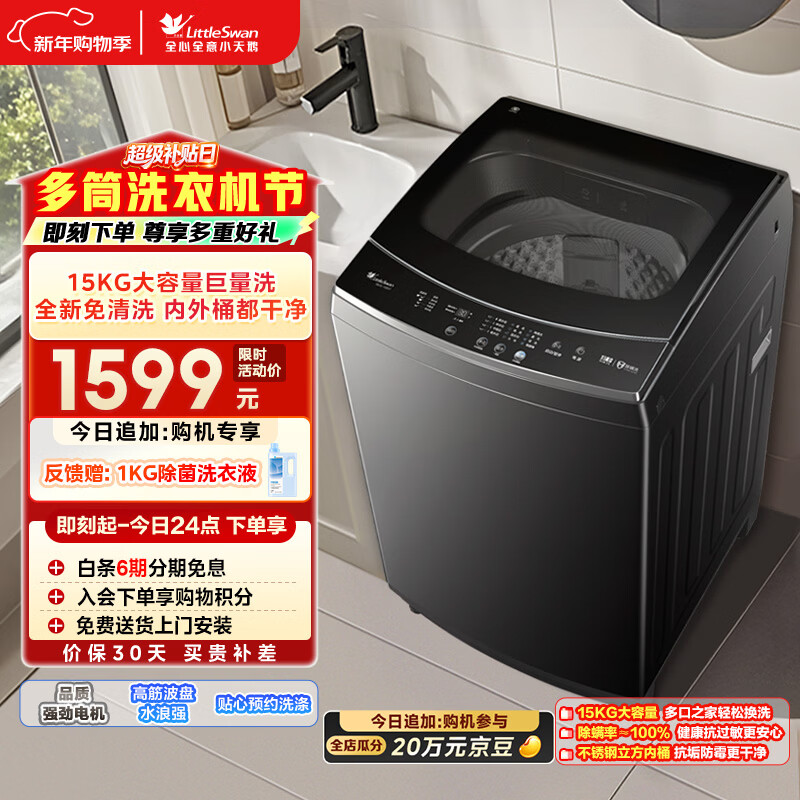 小天鹅(LittleSwan)波轮洗衣机全自动家用 15KG超大容量 TB15-1808T 免清洗不脏桶 健康除螨 以旧换新