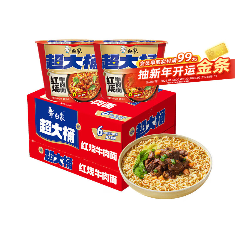 白象 方便面 超大桶红烧牛肉面140g*12桶 大面饼 泡面桶面 整箱