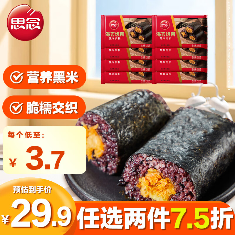 思念海苔黑米肉松饭团150g*8 速冻早餐糯米微波加热即食速食生鲜食品
