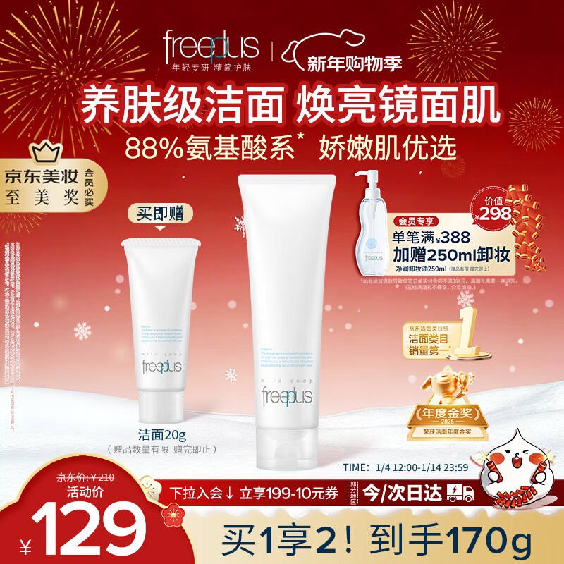 芙丽芳丝(Freeplus)洗面奶男女士氨基酸洁面乳150g
