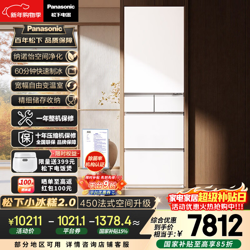 松下(Panasonic)小冰糕2.0 450L法式多门冰箱小户型家用嵌入式无霜自动制冰一级能效NR-EE45BXA-W【国家补贴】