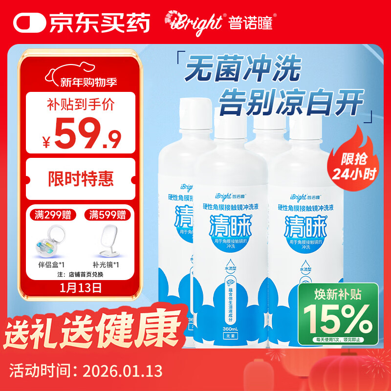 普诺瞳清睐OK镜RGP硬性角膜接触镜冲洗液生理盐水无菌冲洗液360ml*4瓶
