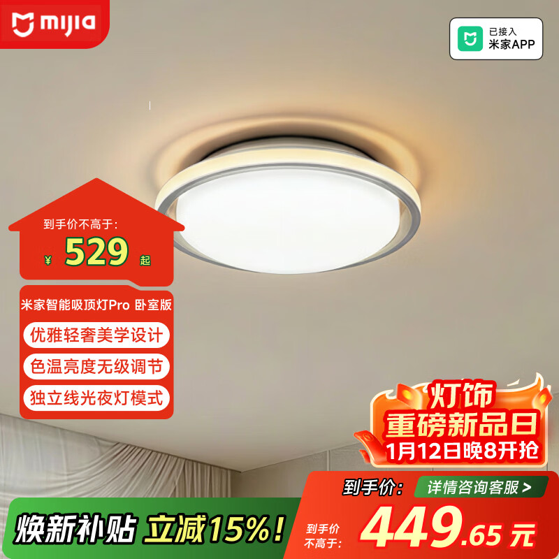 米家(MIJIA)米家智能吸顶灯PRO卧室版卧室灯儿童房灯具简约现代【包安装】