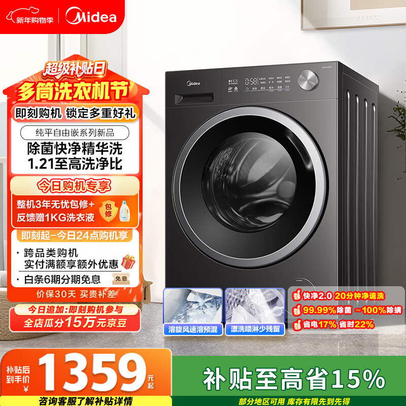 美的(Midea)纯平自由嵌 滚筒洗衣机全自动 10公斤 1.21高洗净比 除菌除螨 MG10V56T 以旧换新 国家补贴 自营