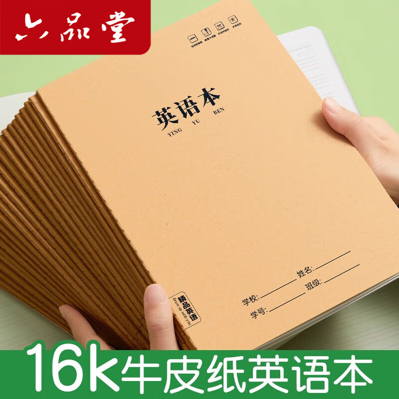 六品堂英语本16k作业本子小学生专用作文英语本初中生英文笔记本批发牛皮纸练习本薄3加厚英语三年级