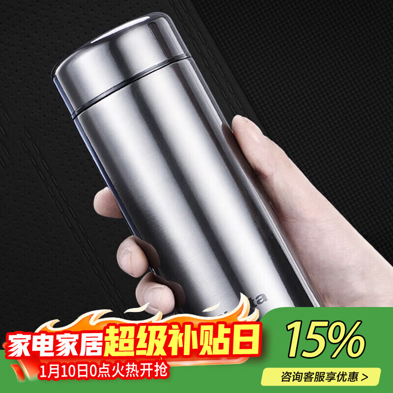 施密特(simita)保温杯男士304不锈钢泡茶水杯车载商务便携带滤网 钢本色 450ml