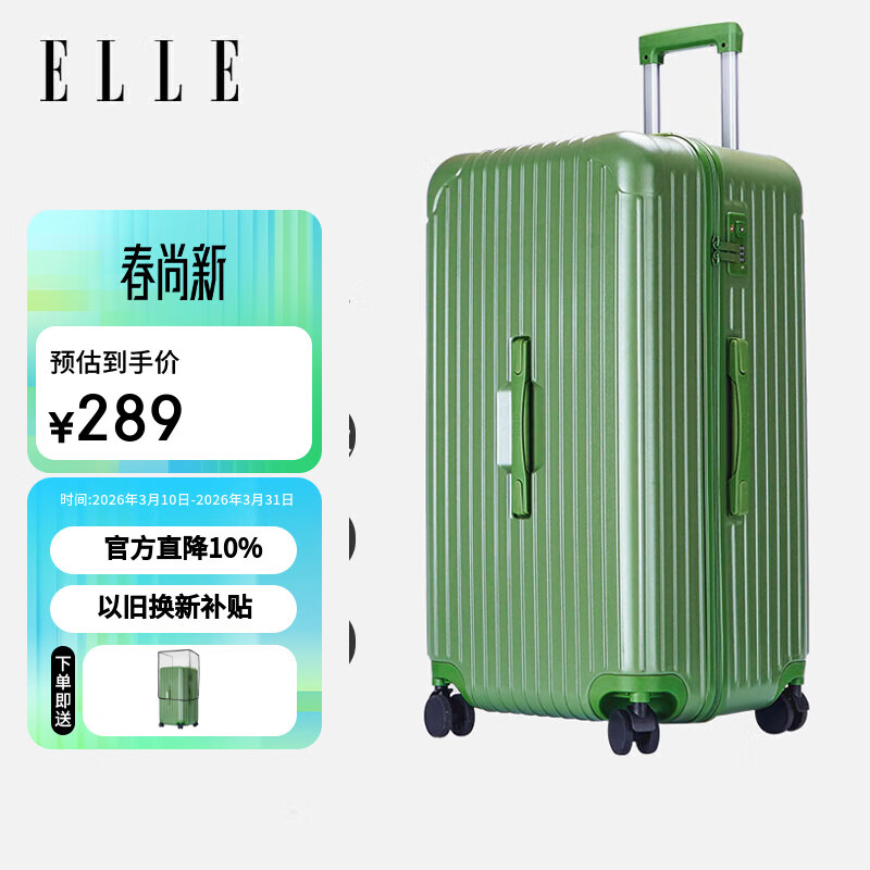 ELLE26英寸牛油果绿行李箱时尚女士拉杆箱拉链密码锁旅行箱密码箱