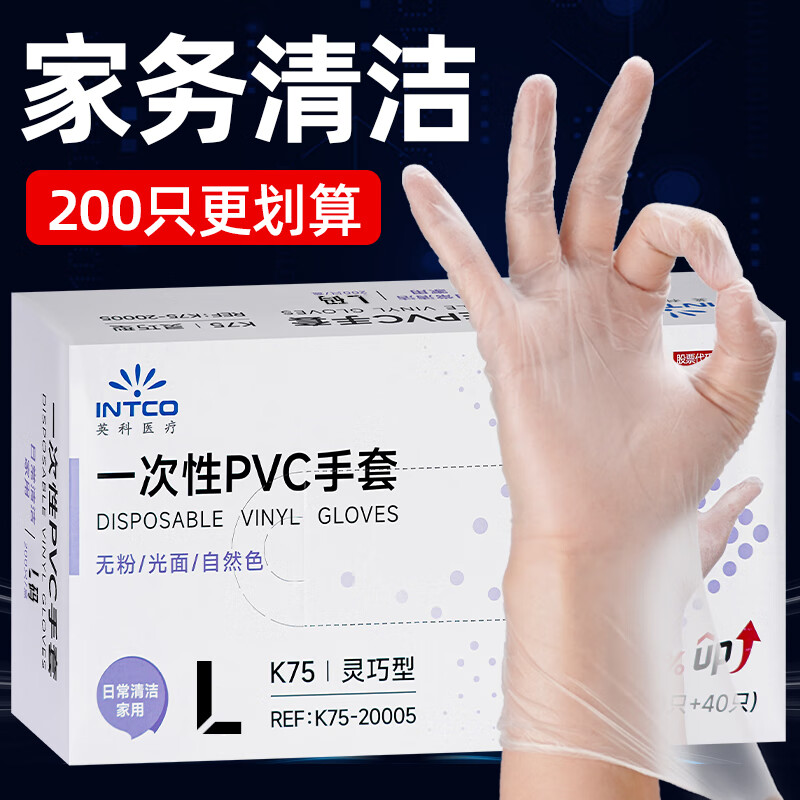 英科医疗(INTCO)一次性手套PVC手套200只大码厨房餐饮家务清洁防水烘焙洗碗手套