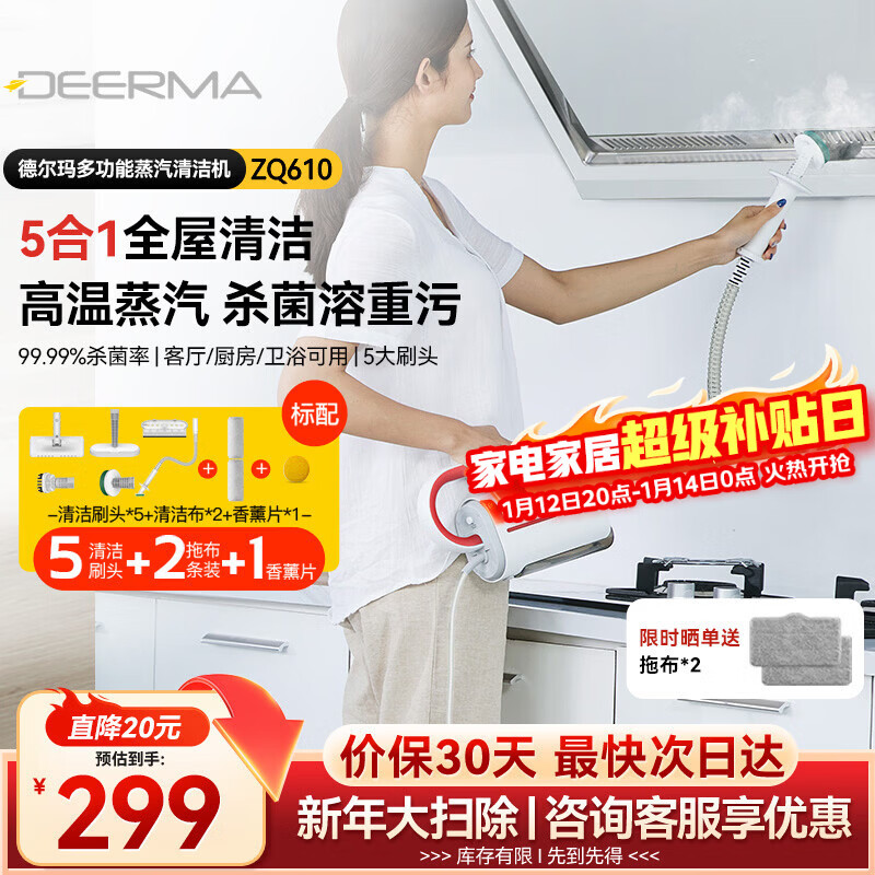 德尔玛(Deerma)【热卖】ZQ610 多功能蒸汽清洁机 蒸汽拖把 家用高温蒸汽机 厨房油污清洗机 布艺沙发杀菌消毒