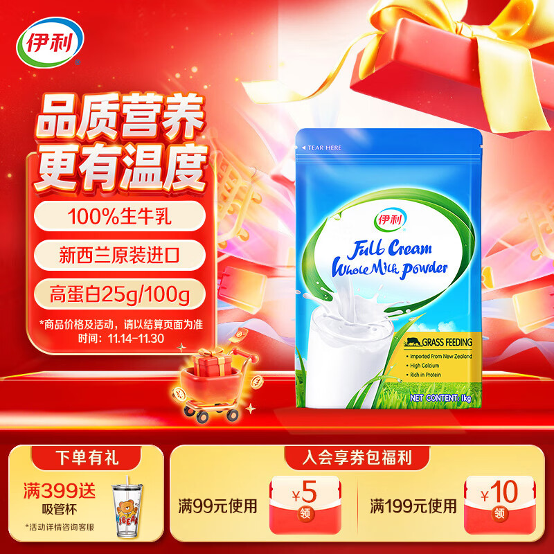 伊利新西兰原装进口全脂奶粉 成人奶粉 营养早餐 原生高钙高蛋白 1kg
