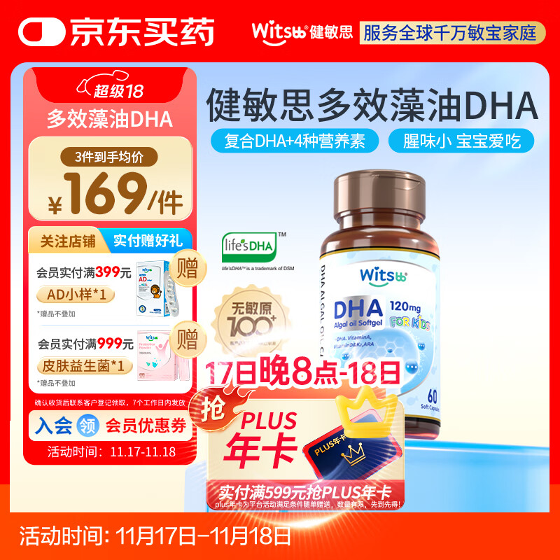 witsbb健敏思藻油dha多效复合DHA宝宝儿童藻油60粒敏宝专研