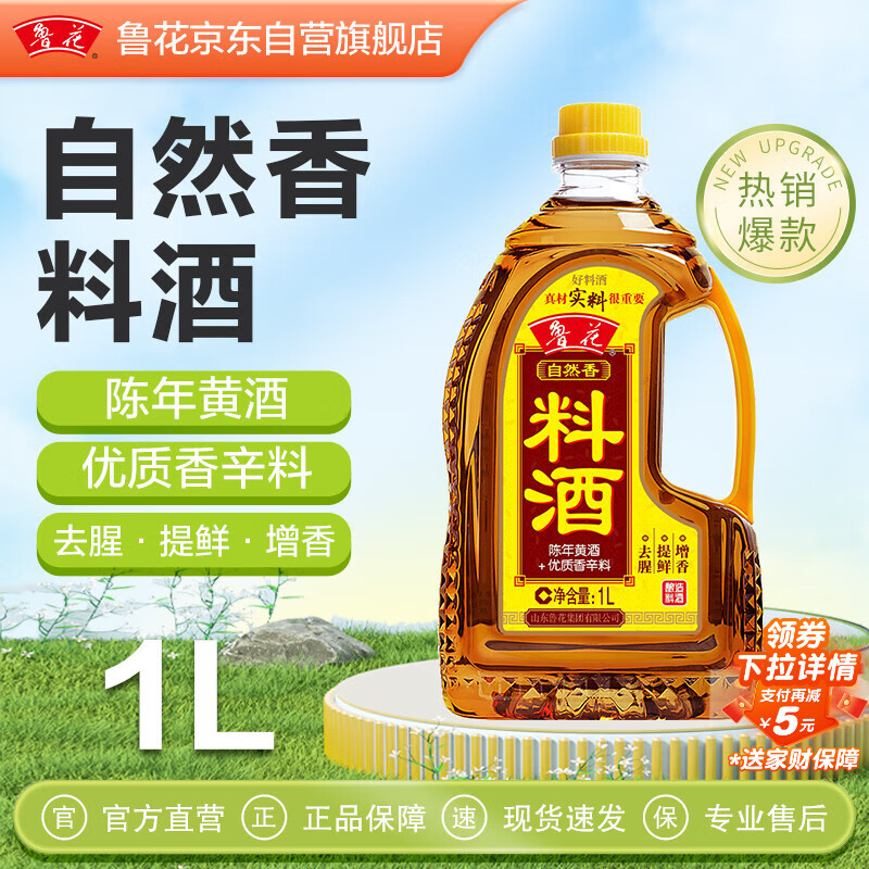 鲁花自然香料酒 1L 黄酒酿造【零添加防腐剂】炖鸡炖肉炒菜 家用调料