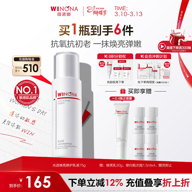 薇诺娜修白乳75g美白保湿补水护肤品乳液面霜护肤品女神节礼物