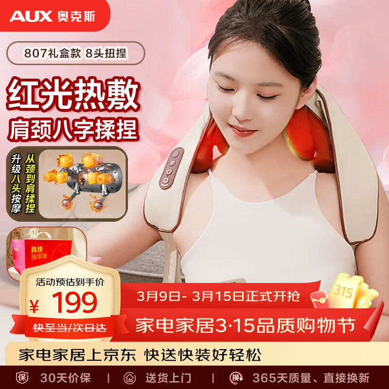 奥克斯(AUX)颈椎按摩器05D-807(8头揉捏)礼盒装 按摩披肩肩膀斜方肌按摩仪送父母女友生日节日礼物