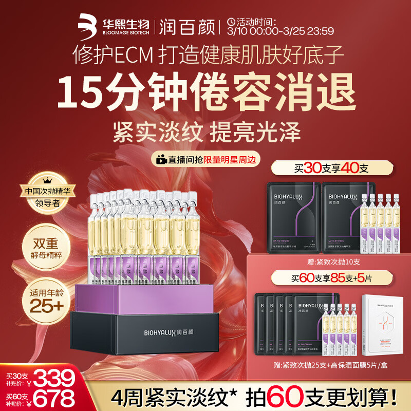 润百颜华熙生物紧致次抛精华30支抗皱紧致保湿护肤品生日礼物