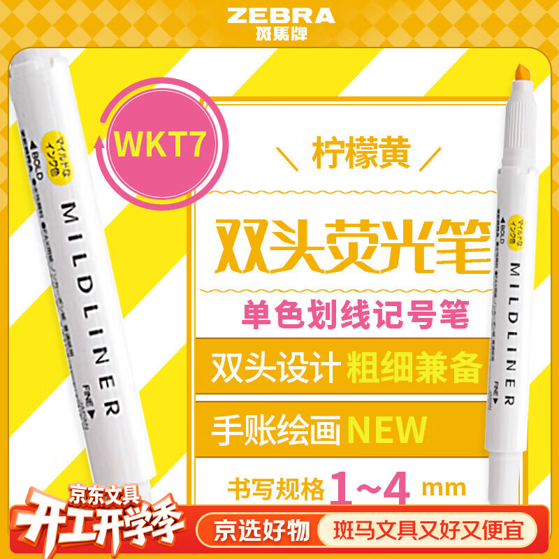 斑马牌 (ZEBRA)【热门商品】双头柔和荧光笔 mildliner系列单色划线记号笔 学生标记笔 WKT7 柠檬黄