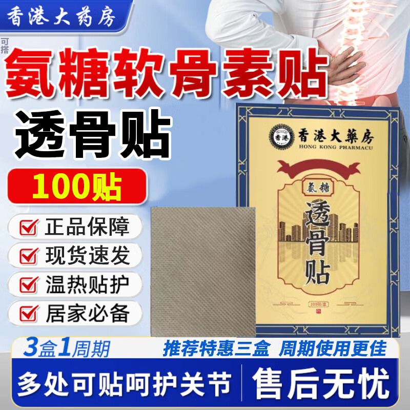 香港大药房股份有限公司氨糖透骨贴颈椎腰椎膝盖关节可搭氨糖软骨素贴跌打疼痛膏贴使用 【年货超值装】1盒100贴