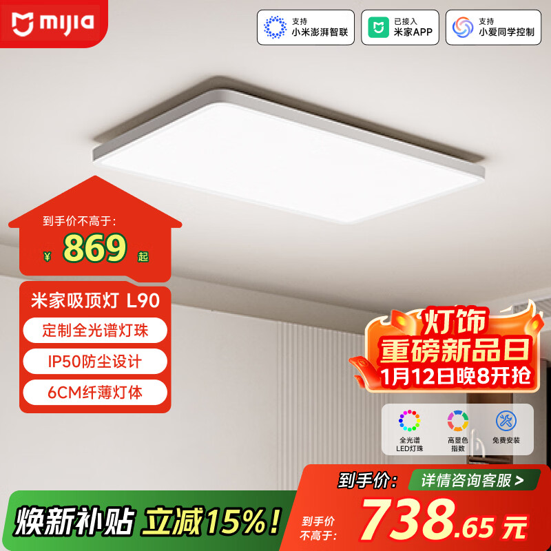 米家(MIJIA)米家智能吸顶灯L90全光谱客厅灯主灯灯具简约现代【包安装】