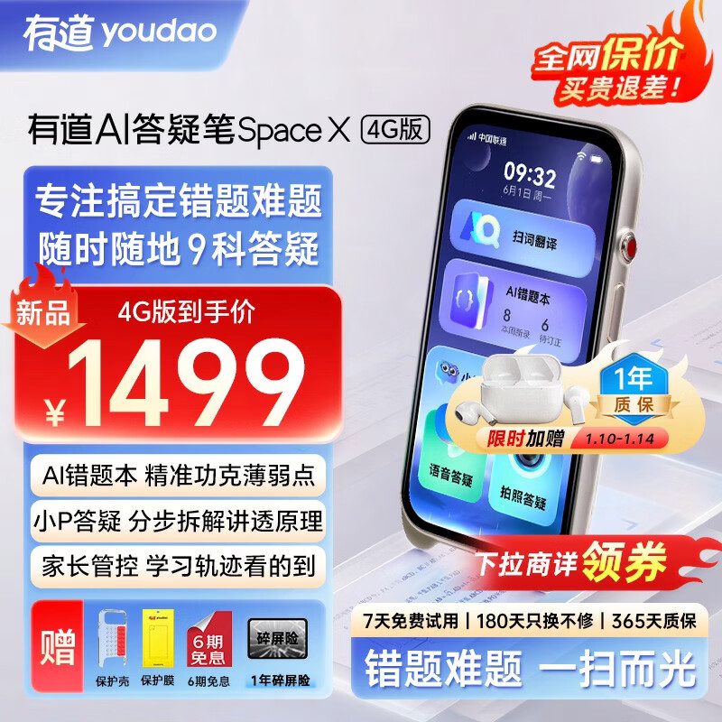 有道AI答疑笔Space X【理科数学学习神器】词典笔英语点读笔小初高全科扫描错题机打印翻译学习机 4G版