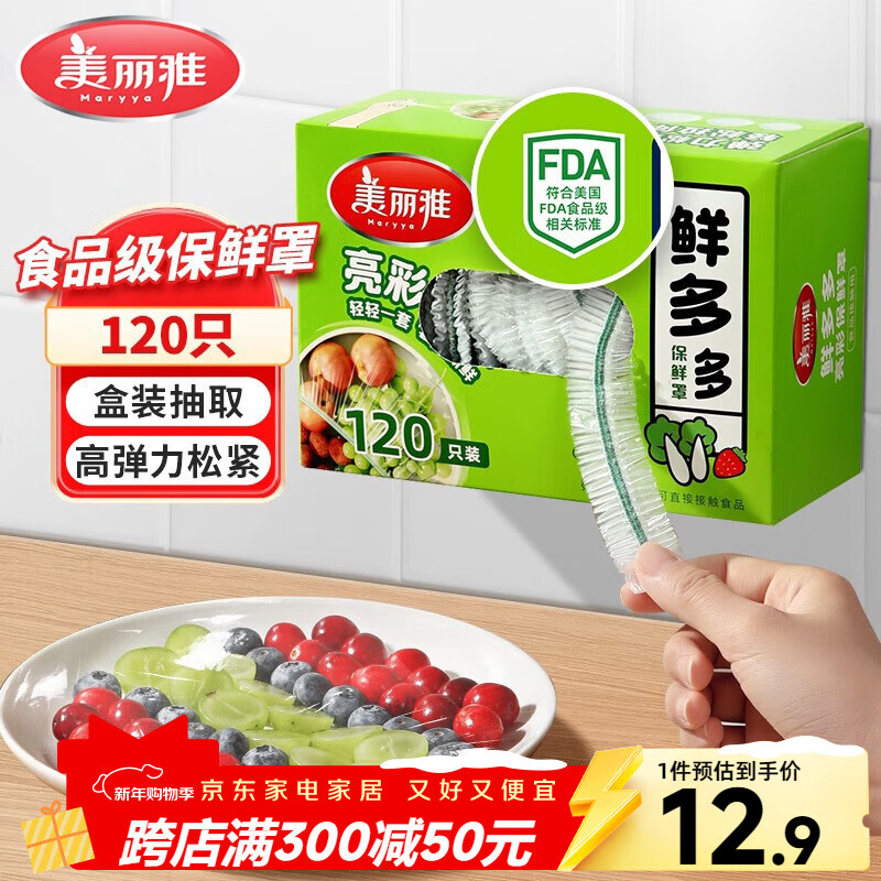 美丽雅一次性保鲜罩120只盒装食品级保鲜防尘可微波炉用保鲜膜套