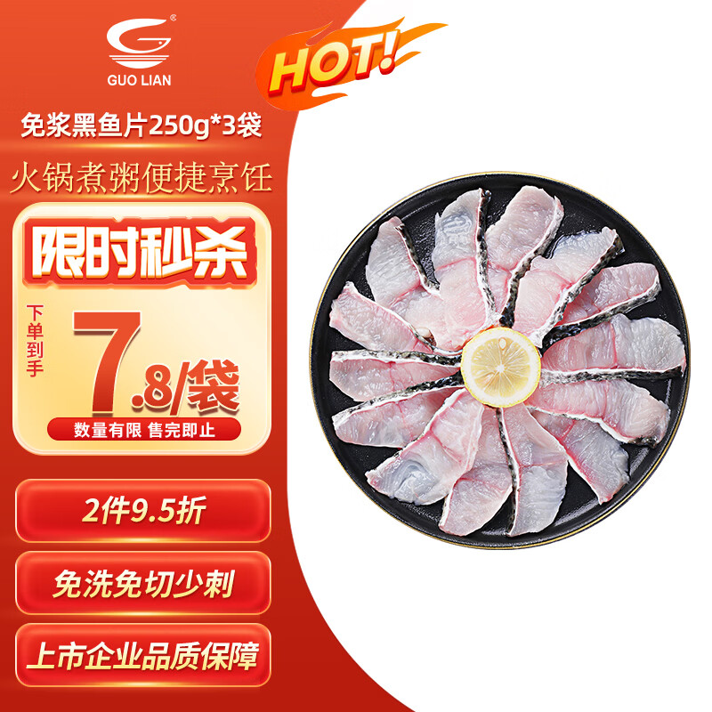 GUO LIAN国联水产 免浆黑鱼片250g*3袋 去骨水煮鱼片酸菜鱼火锅食材年货节