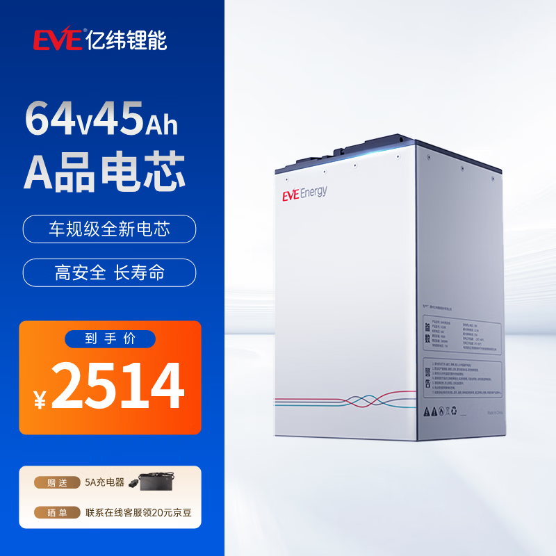 亿纬锂能电动车锂电池64V45Ah 电瓶车电池 爱玛雅迪电动车电池送5A充电器