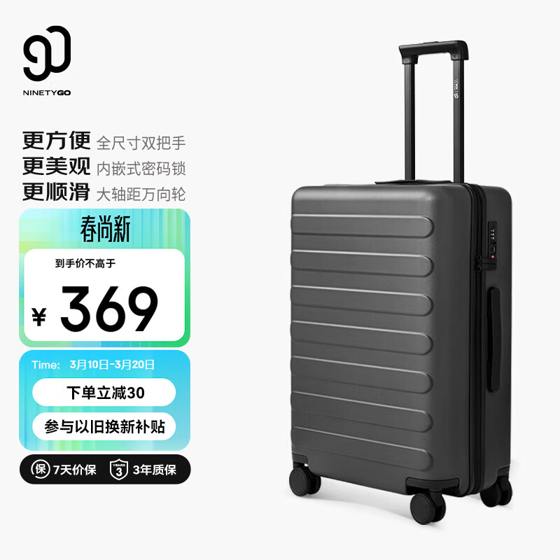 90分行李箱24英寸莱茵河经典京东联名拉杆箱 登机旅行箱密码箱 钛金灰