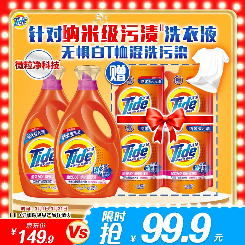 汰渍去渍洗衣液淡雅樱花15斤装(2.75kg×2瓶+500g×4袋)家庭装