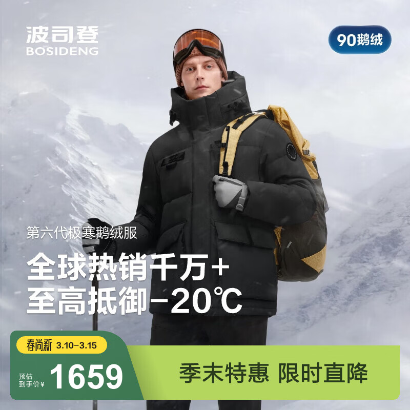 波司登(BOSIDENG)极寒鹅绒羽绒服男士冬季加厚连帽短款百搭保暖时尚外套B250242301 黑色8056-至高抵御-20°C L 180/100A 体重约140-160斤