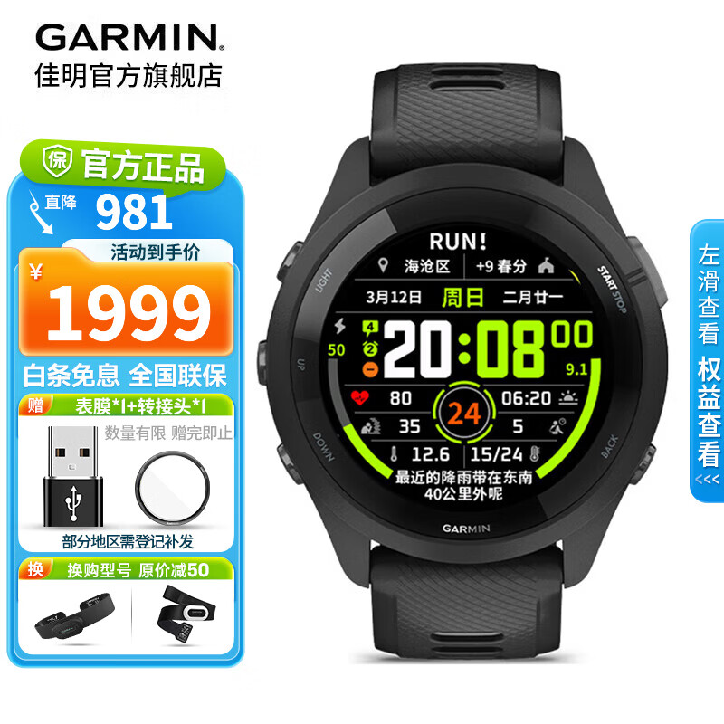 佳明(GARMIN)FR265运动手表智能手表腕表户外铁三跑步游泳跑表心率血氧 礼物 Forerunner265 音乐版 极夜黑